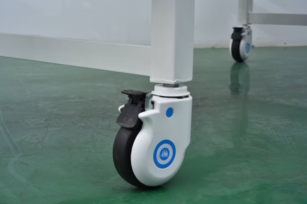 Механический привод с червячной передачей позволяет регулировать угол наклона головной секции в диапазоне от 0 до 75 градусов. Это дает возможность удобно размещать пациента для различных медицинских процедур, а также для отдыха. Кровать также оснащена четырьмя колесами диаметром 125 мм, два из которых имеют педальные тормоза, что обеспечивает легкость перемещения и фиксирует кровать в нужном положении.
